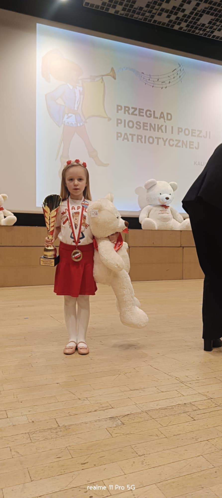 27 stycznia 2026 roku odbyła się uroczysta Gala Finałowa Przeglądu Piosenki i Poezji Patriotycznej Kalisz 2026 w wykonaniu dzieci ze szkół i przedszkoli publicznych i niepublicznych z terenu województwa wielkopolskiego na Auli Prof.Jerzego Rubińskiego w Kaliszu ! miło nam poinformować , że nasza wychowanka Lilianna Kieliszkowska z grupy Biedronki jako finalistka zaprezentowała się w piosence „Polska - moja mała Ojczyzna”. Lilianna swoim głosem i talentem wokalnym zachwyciła jury na eliminacjach konkursowych , a wczoraj mogła poczuć się jak prawdziwa Piosenkarka na wielkiej scenie ! Gratulujemy naszej Lili. Serdeczne gratulacje składamy również rodzicom !