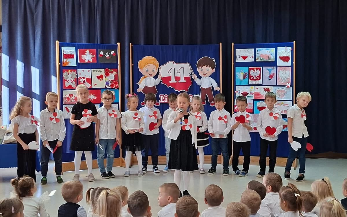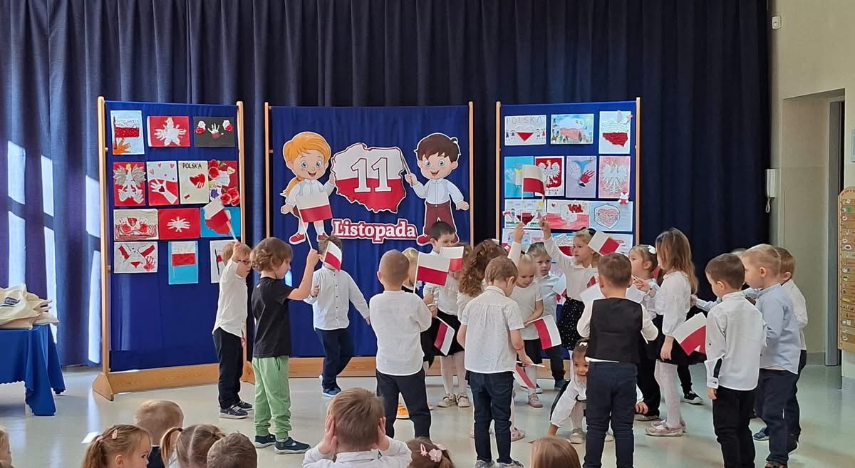 Święto Niepodległości w naszym przedszkolu Dziś w naszym przedszkolu z dumą uczciliśmy Święto Niepodległości. Wspólnie odśpiewaliśmy hymn „Mazurek Dąbrowskiego”, a każda z grup zaprezentowała wzruszające piosenki i wiersze o tematyce patriotycznej. Podczas uroczystości został również rozstrzygnięty konkurs plastyczny „Przedszkolak – Mały Patriota”. Wszystkie prace zachwyciły nas pomysłowością i ogromnym zaangażowaniem naszych małych artystów. Każdy uczestnik otrzymał pamiątkowy dyplom i drobny upominek . To był wyjątkowy dzień pełen emocji, radości i dumy z bycia Polakiem. Dziękujemy wszystkim przedszkolakom i ich rodzicom za wspaniałe przygotowanie i wspólne świętowanie.